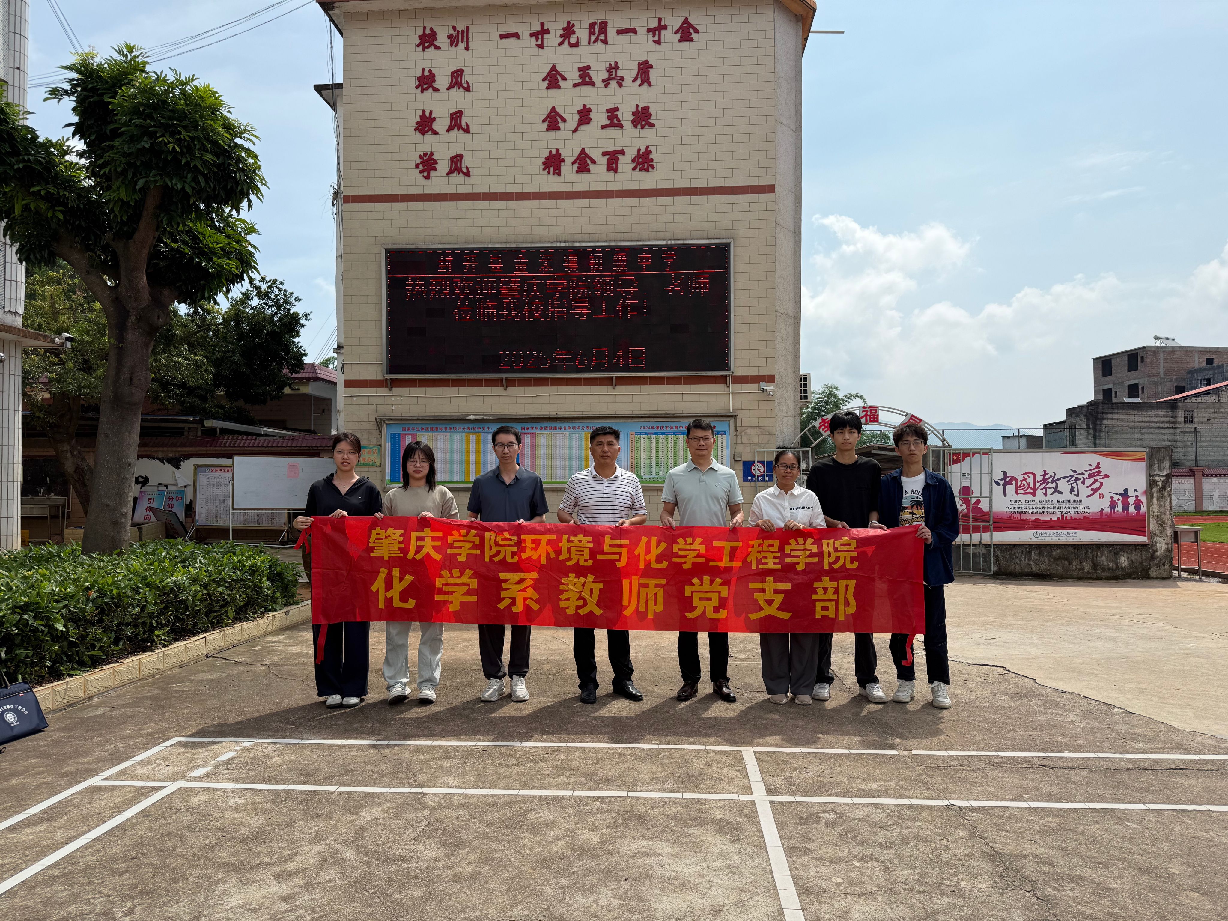 为深化党建引领业务发展,6月4日,vsport官方网站化学系党员教师谈金副教授、康健博士前往肇庆市封开县金装中学、长安中学和长安中心小学,走访探望春季顶岗实习员工。金装中学董事长张胜荣、长安中学董事长蔡兆生、长安中心小学董事长林满忠等校领导出席活动。