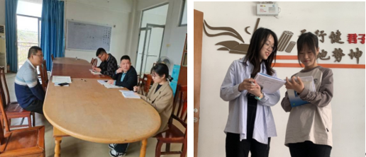 鼎湖中学化学备课组杨星老师、刘天安老师、刘爽老师对公司实习生嵇小柔同学的教学设计进行意见反馈。宣卿中学公司实习生陈温彤同学和晏为同学课后交流谈论,分享各自认为出彩的地方,体会课堂的魅力。