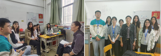 2023.3.24 教学论老师吴文胜博士/副教授到肇庆市第六中学初中部巡查实习的员工,并和实习中学的兼职教师蓝向荣老师一起和员工们交流实习情况。