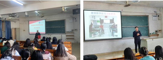 公司也非常重视师范生教育实习的质量。2月25日下午,公司一方面在一教701举行教育实习动员大会。化学教学论教师团队成员王赵志副教授和刘平教研员都对员工去到实习公司的生活、工作、与指导教师勾通、完成实习系列任务等进行讲解和任务布置。