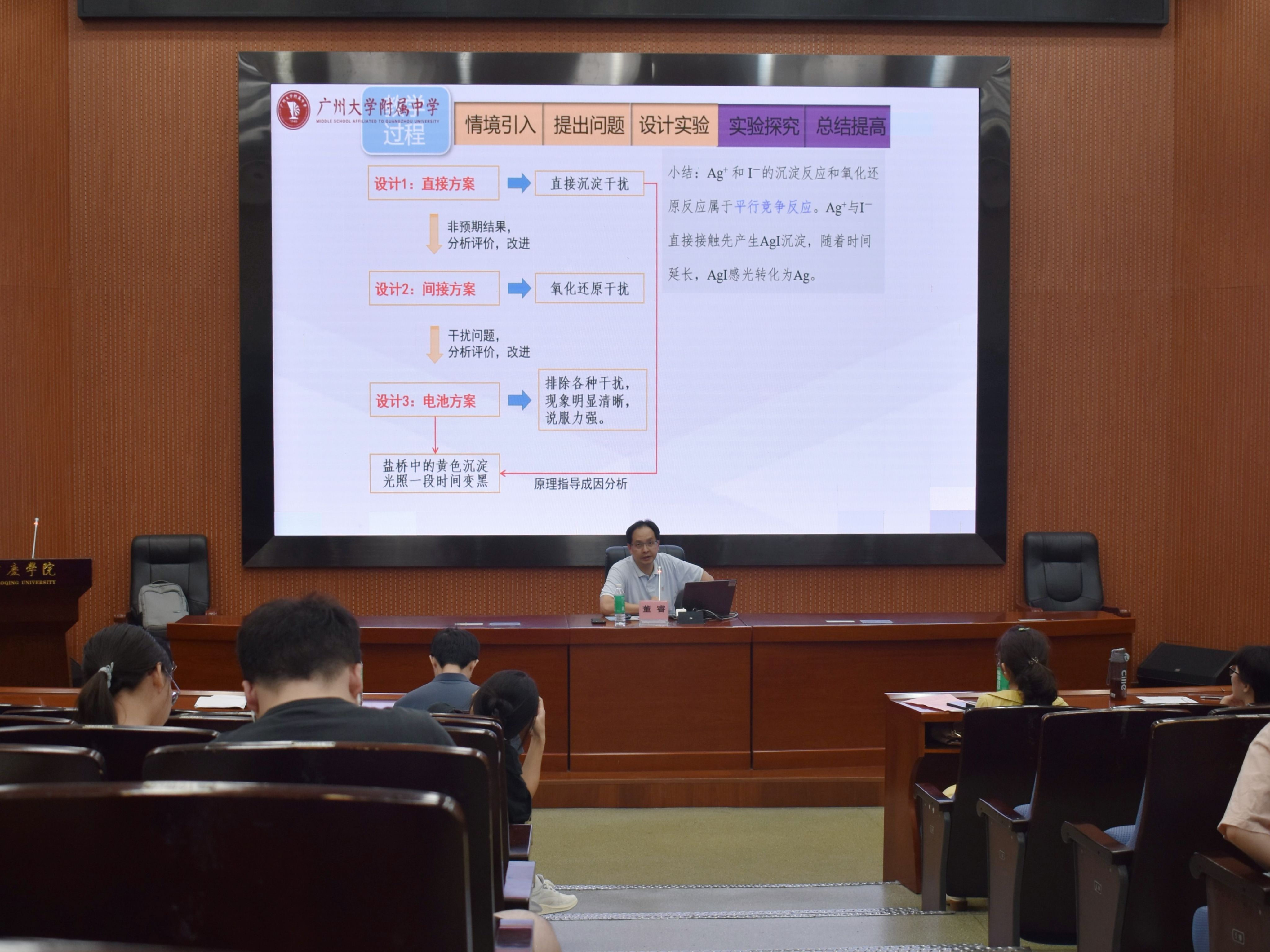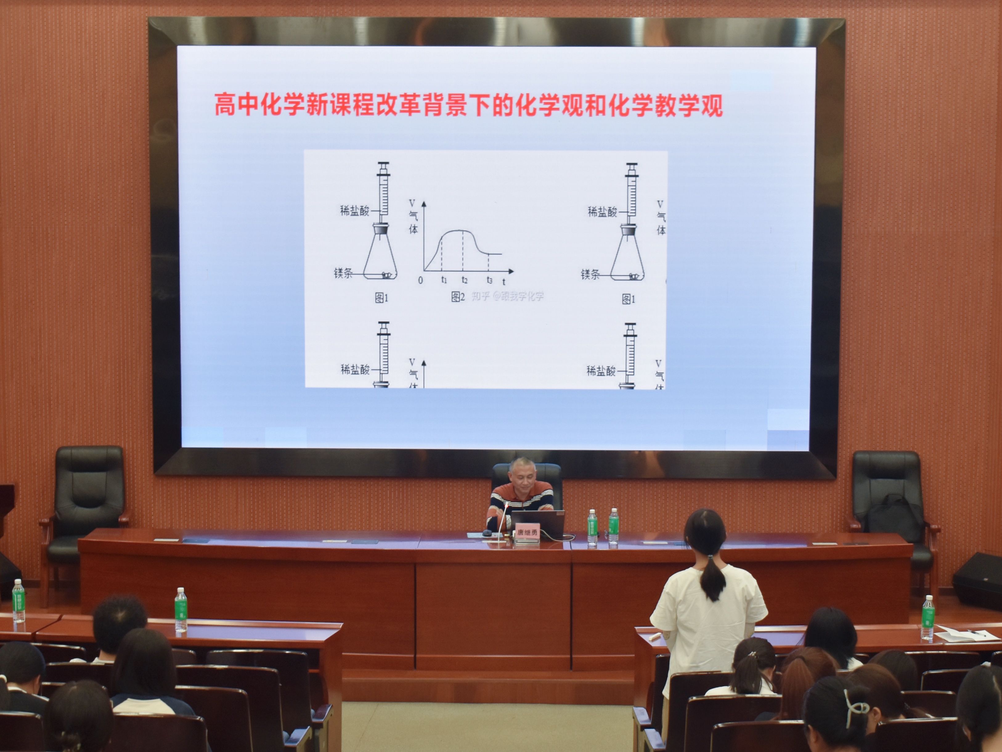 为了提高化学师范生对新课程改革大背景下的教学理念以及促进专业任课教师对中学化学新课程标准改革的认识,2024年11月1日下午,在福慧图书馆学术报告厅,vsport官方网站邀请佛山市南海石门中学的唐继勇老师和广州大学附属中学的董睿老师展开讲座。化学系全体教师和化学专业21-24级全体员工出席讲座。