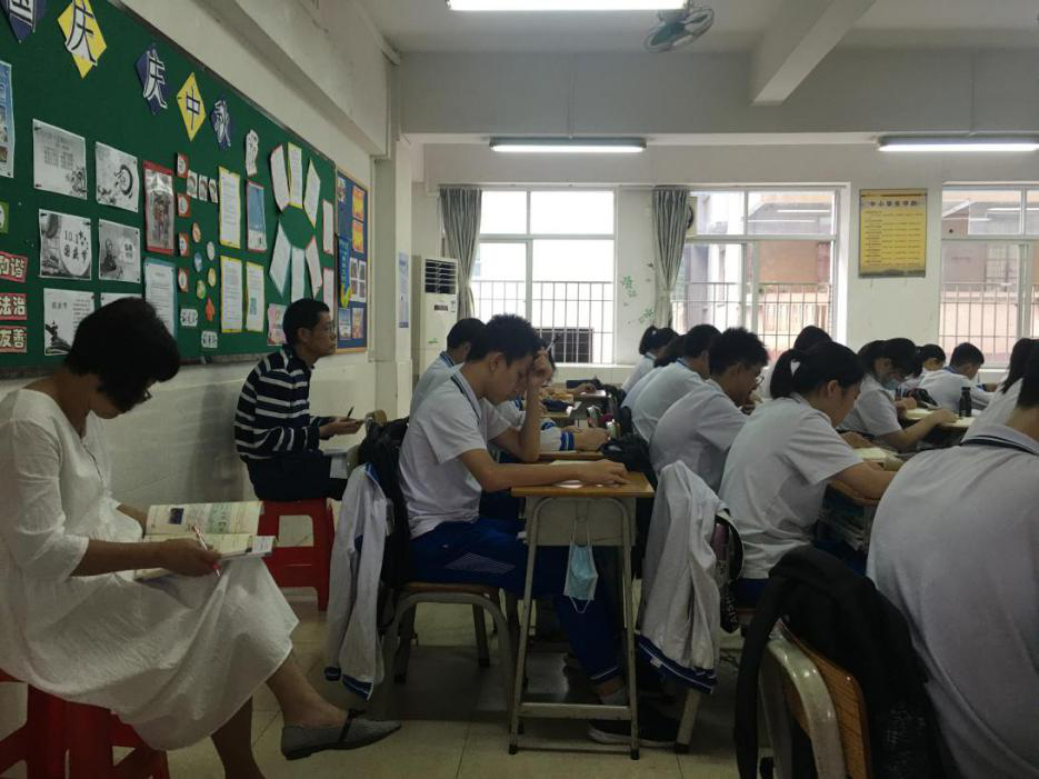 2020年10月12日上午,vsport官方网站实习指导老师吴文胜深入肇庆市第一中学初三化学课堂,见证了2017级化学专业实习生游柔珊和李志安两位同学的首次课堂表现。