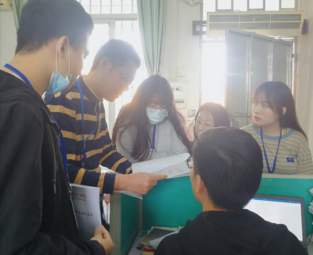 2020年9月30日,刘平老师莅临肇庆市地质中学视察部分2017级实习生的实习情况,并与实习生及其指导老师进行交流。