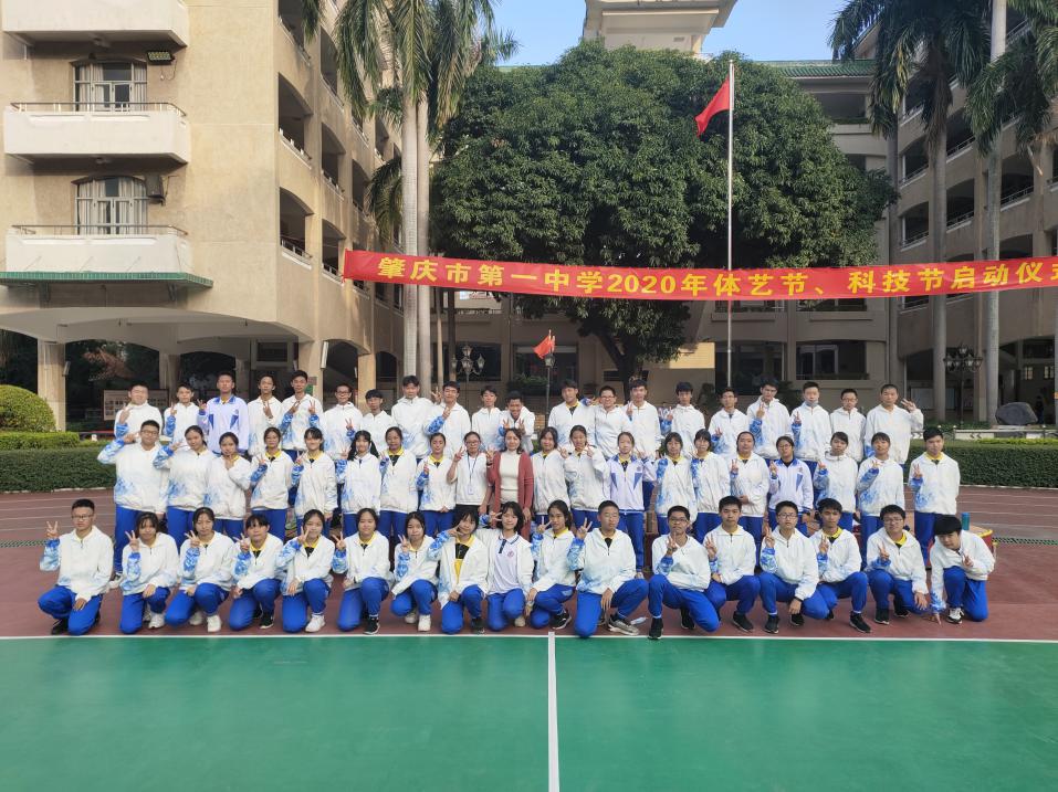 (林婵静同学与一中指导老师、九7班员工合照)