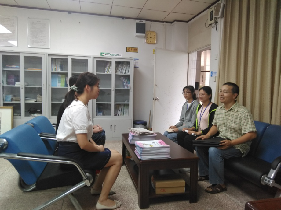 (王赵志老师与实习中学教务处领导交流实习生表现)