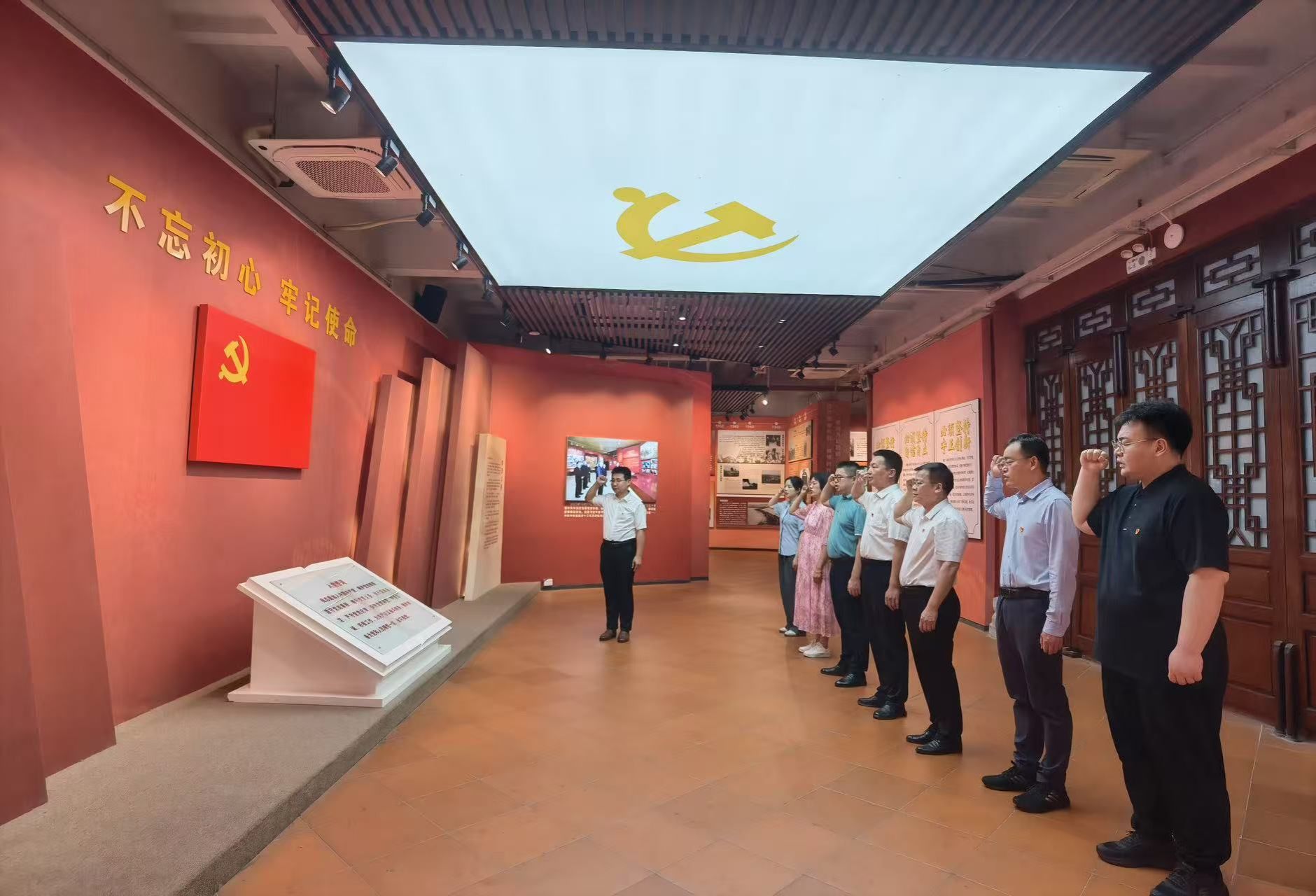 活动首站,双方党员走进叶挺独立团团部旧址。在讲解员的引导下,党员们穿越时空,重温那段波澜壮阔的红色革命岁月,深刻感悟革命先辈的英勇无畏与坚定信仰。随后,在庄严的党旗下,全体党员紧握右拳,庄严宣誓,重温入党誓词。