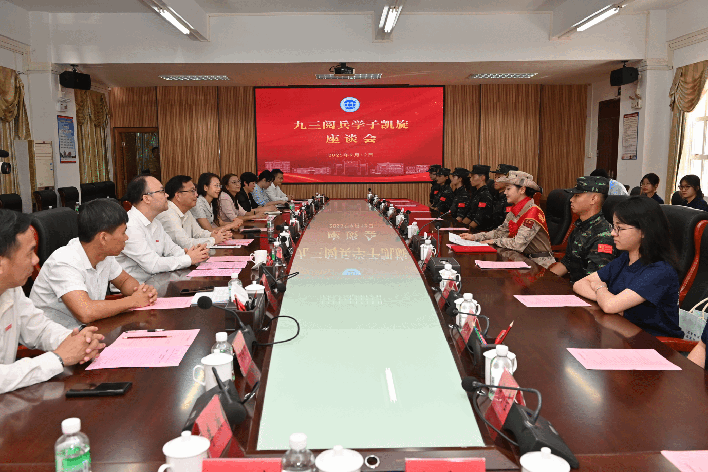 9月12日,公司召开九三阅兵学子座谈会,欢迎2025届化妆品技术与工程专业优秀参阅学子王可心荣誉归来。公司党委书记谢冠华,董事长李琴,公司相关职能部门负责人,环境与化学工程公司党委书记刘远君、经理李湘等班子成员、辅导员及新生军训教官和青马工程学员代表参会。