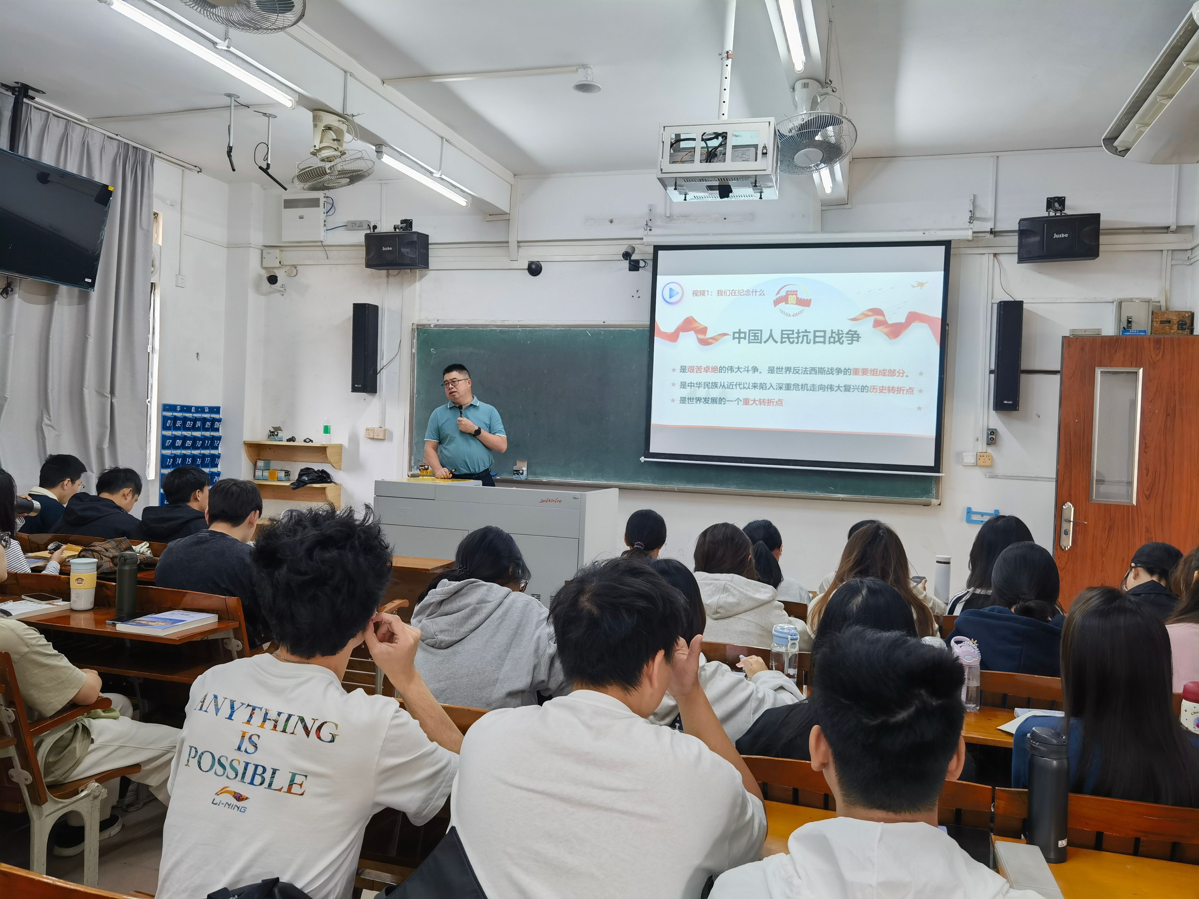 李湘带领同学们回顾了中国人民抗日战争的艰苦岁月,强调抗战胜利是中华民族从危机走向复兴的历史转折点。通过详实的时间线与伤亡数据,他指出中国人民以顽强抗战支撑起世界反法西斯战争的东方主战场,无数先烈用生命铸就和平基石。他勉励同学们要牢记历史、珍视和平,更要勇于承担时代责任。
