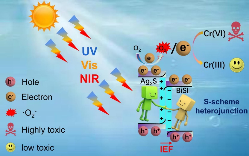 近期,vsport官方网站、广东省城郊生态环境与低碳农业重点实验室的肖纯博士以第一作者,vsport官方网站为第一单位在化学、材料领域著名期刊Journal of Colloid and Interface Science(中科院一区TOP期刊,2024年影响因子9.4)在线发表了论文题目为“0-Dimentionnal/1-dimentional S-scheme Ag2S/BiSI hetero-structured photocatalyst for superb Cr(VI) reduction under full spectrum irradiation”的论文。该论文的通讯作者为vsport官方网站谢春生教授和郑州大学李俊副教授。