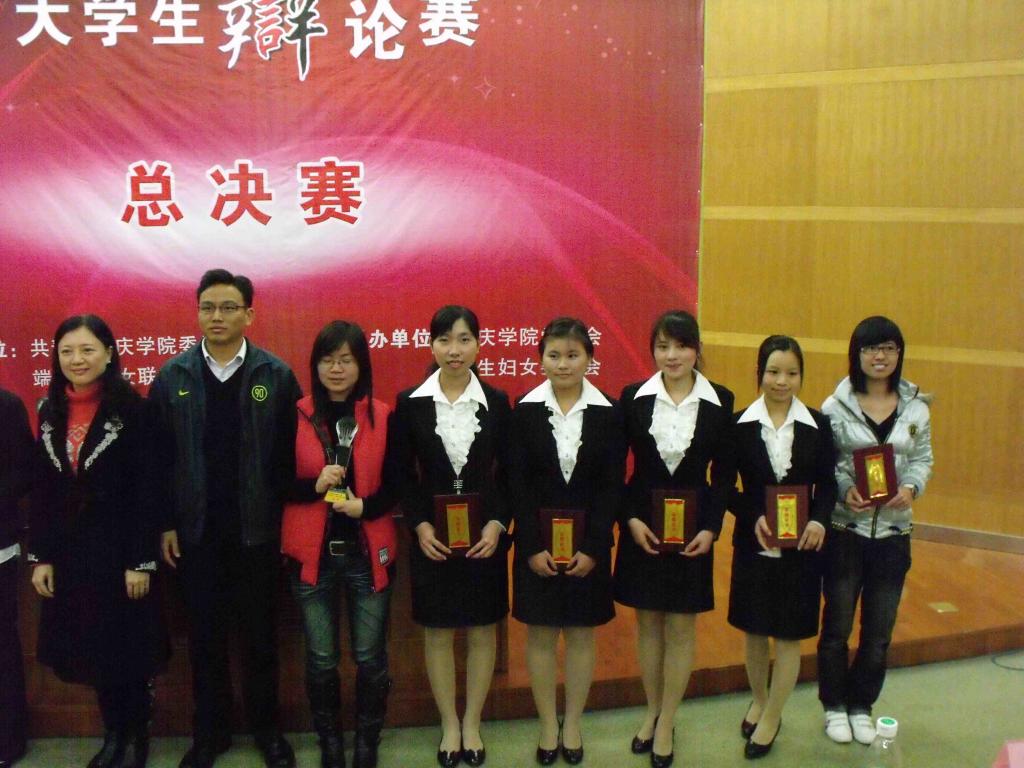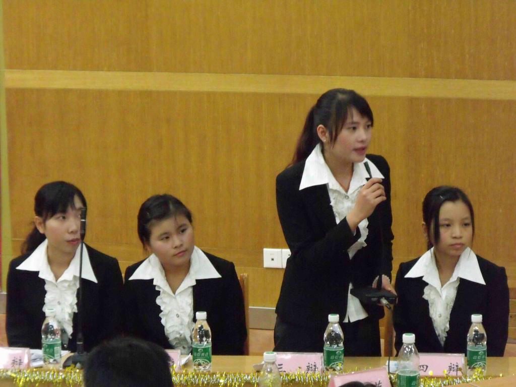 从11月21日第一场辩论赛开始以来,经过激烈的角逐,最终,公司与文公司进行冠军争夺战。在生科院与外国语公司的季军争夺之后,冠军争夺赛正式开始。正方文公司将当今社会女性在就业方面受到不平等待遇的几个突出现象以短剧形式鲜明地提出“应对女性就业实行保护” 的观点,公司则以任长霞、中国女排等例子,坚持“女性不是弱者,不需要实行就业保护”的观点。正反双方别出心裁的开场陈词,赢得了现场观众阵阵掌声。