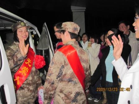 怀着对祖国的无限热爱,带着对师生的殷切期盼。12月23日凌晨2点40分,公司2006级制药工程班邓晓云同学身着整齐军装、胸戴红花、英姿飒爽,准备开启全新的军旅征途。公司党委书记李文明、副书记陈玉华、辅导员胥家桢,以及员工辅导员郑钟云和部分员工代表到公司行政楼前为邓晓云同学送行。