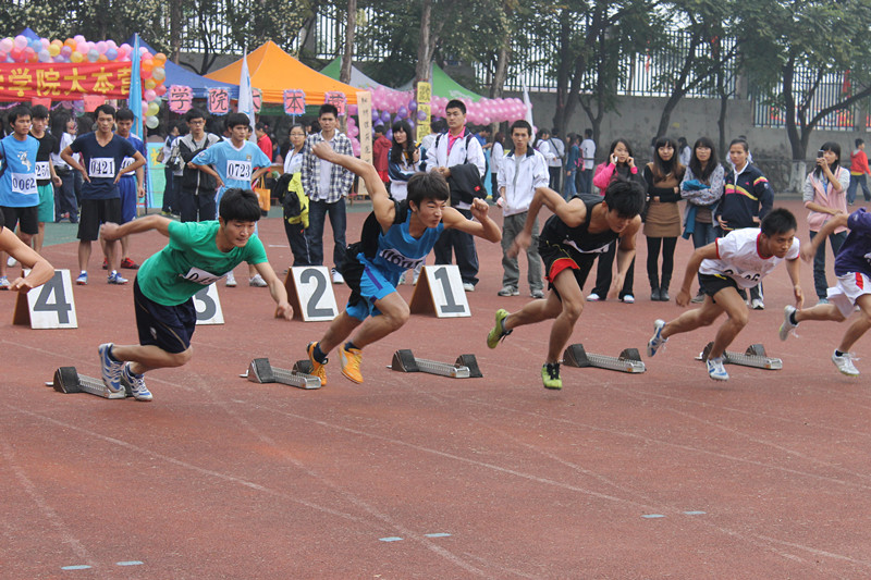 结果令人可喜,过程同等精彩。赛场上,健儿们容光焕发,信心十足地活跃于各个赛点。百米比赛上,健儿们如同旋风般疾驰而过,留下了身后同学们加油的呐喊;铅球实心球场上,一道道美丽的弧线划破美丽的长空;跳远比赛中,健儿们铿锵有力的助跑、加速、起跳、腾空,一连串优美的动作汇成一道优美的弧线,定格在同学们惊叹声中,最终在沙池上留下了深深的脚印;转眼跳高场上,运动健儿们,用那矫键的身躯,冲刺着一个又一个的高度,优美的背越式、轻盈的跨越式引起了观众的阵阵喝彩;4*100赛上,考验健儿们的不仅是速度,还有团队精神,健儿们完美的传棒引来了全场肯定的喝彩声。场外广播连绵不断的加油声,观众此起彼伏的呐喊声汇成一片,鼓励着健儿们奋勇拼搏,成为了校运会不可或缺的部分。