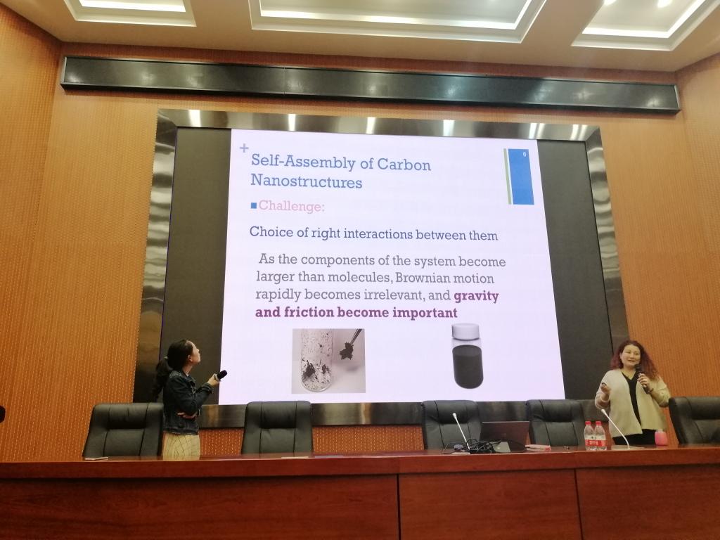 Dr. Mildred从自己多年的学术研究成果出发,针对员工的专业特点,围绕二维材料(二硫化钼、二硫化钨,特别是石墨烯)的制备以及在环境和化学领域的先进应用技术探索进行了介绍。比如应用石墨烯功能材料制备化学传感器,有效测定烟气、水体的污染成分;通过表面改性制备辅助水裂解的功能材料、储能材料等;在水污染治理方面,设计特性材料进行油水分离、脱盐、去除有机污染物等方面的研究。Dr. Mildred将研究的科学性与生活的实践性相结合,讲座内容深入浅出,进一步开阔了老师的学术视野,调动了员工的学习和科研兴趣。(撰稿、摄影:戴敏)