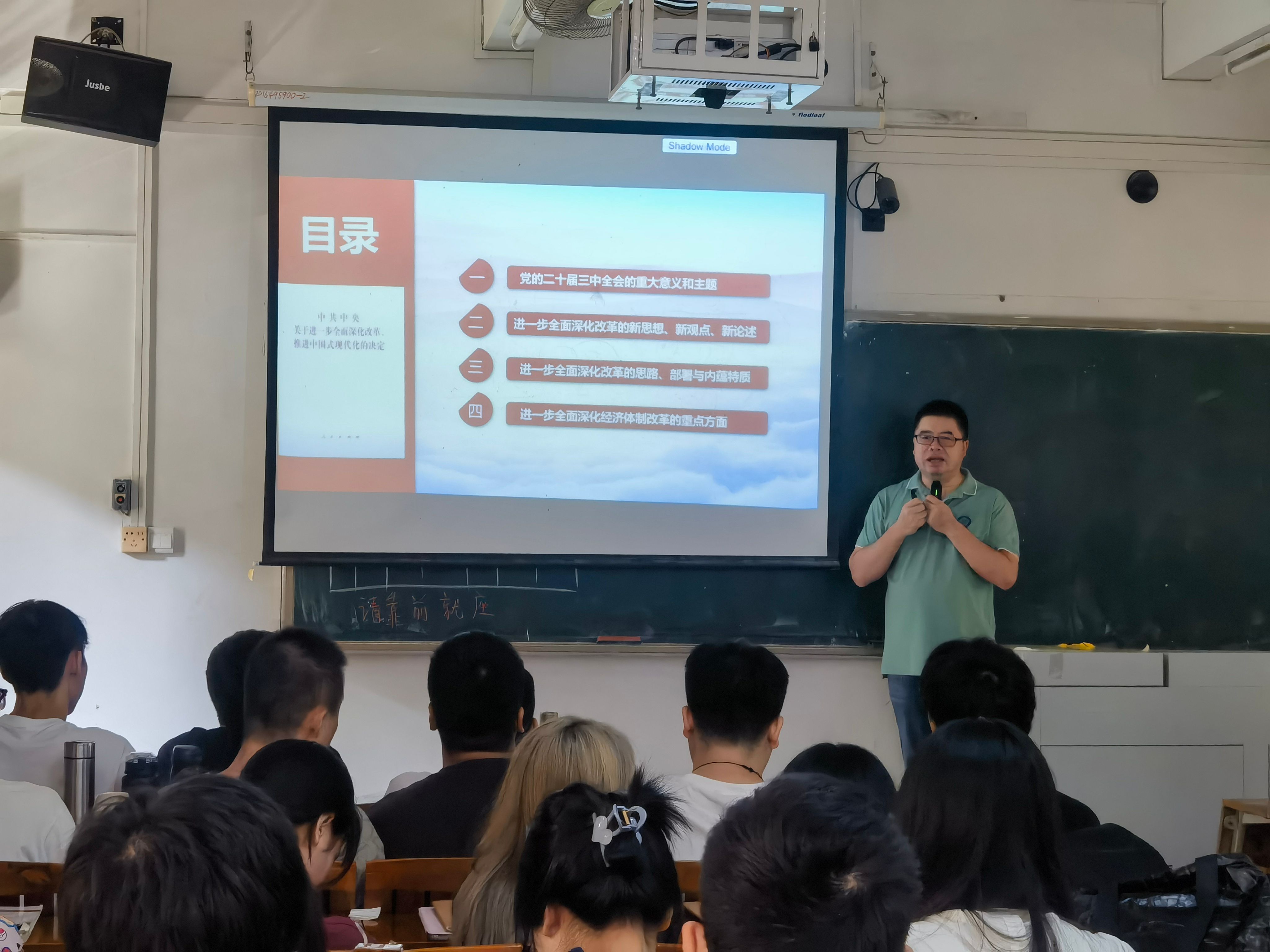 李经理以《擘画进一步全面深化改革新蓝图》为主题,深刻的阐述了党的二十届三中全会的重大意义和战略部署。同时李经理还以“全面深化改革”为切入点,与在座同学们热烈讨论了中国在经济体制改革和对外开放方面的新思想、新观点和新论述。