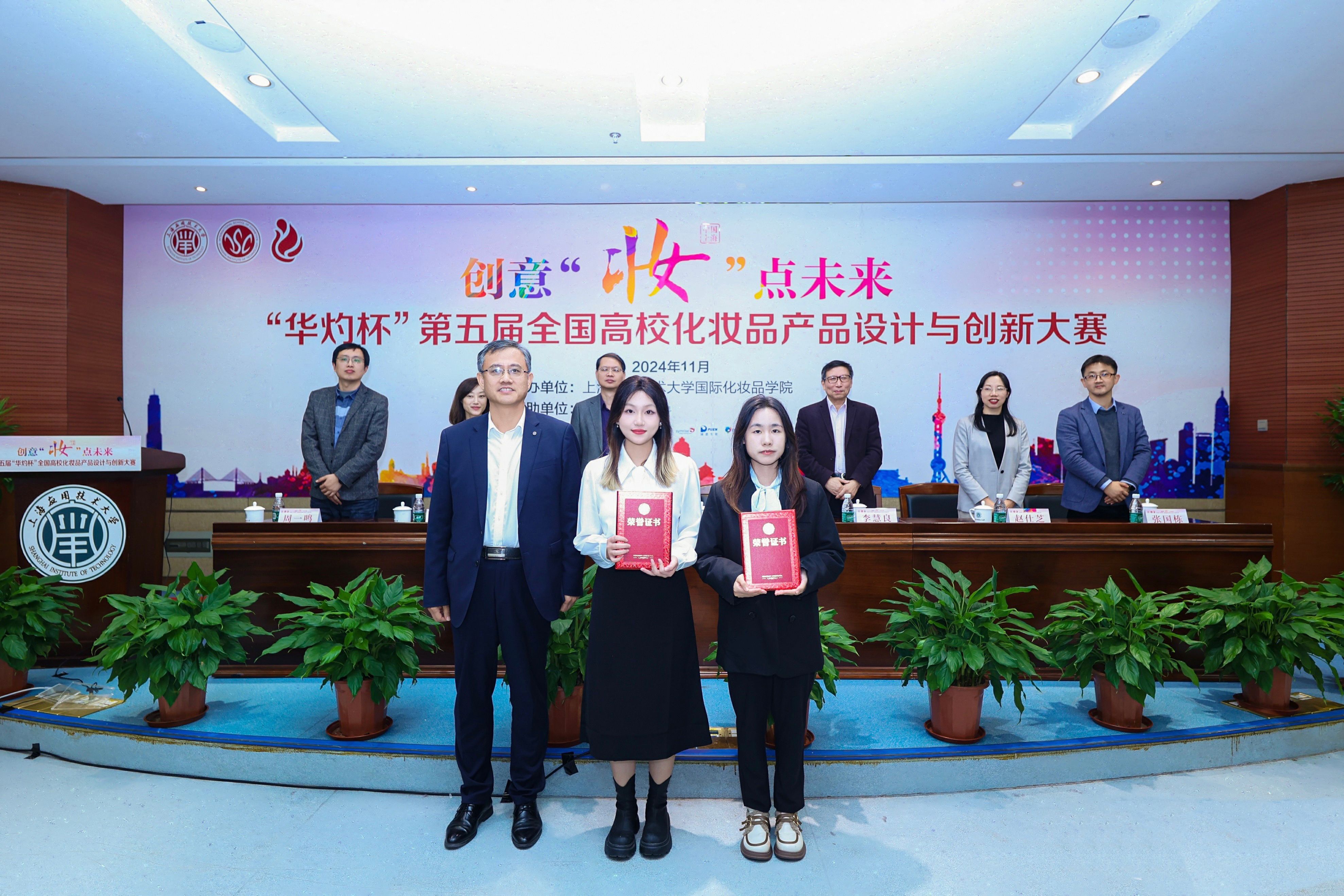 11月23日-24日,第五届华灼杯全国高校化妆品产品设计与创新大赛在上海应用技术大学圆满落幕,vsport官方网站化妆品技术与工程专业师生在此次大赛中表现出色,荣获多项大奖。经激烈的角逐,vsport官方网站脱颖而出,斩获一等奖1项、二等奖1项、三等奖3项、产品创意奖1项和功效验证奖1项,张博、高爱环两位老师获评“优秀指导教师”,充分展现了vsport官方网站在化妆品产品设计与创新领域的实力。