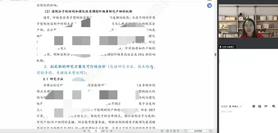 杜丽教授以公司青年博士申报书《纤维素选择性转化为糠醛的调控及影响机制的研究》和《近红外光响应结晶氮化碳光催化剂的合成及其性能研究》为例,结合自己申报课题的宝贵经验,毫无保留的对申报书做了“点对点”的打磨和修改,从课题名称科学性、申报代码选择、立项依据、研究关键问题、研究计划、创新性等方面做了详细、透彻、针对性的辅导,就申报书里的困惑和问题做了现场的讨论和指导,讲座以线上讲解加讨论答疑方式进行,让参会教师受益匪浅。经过杜丽教授的“点对点”指导,以点带面,有效提升了公司教师申报国家基金项目书的撰写质量,希望公司今年能有更多国家自然科学基金项目申请获准立项,进一步推动公司学术高质量发展。